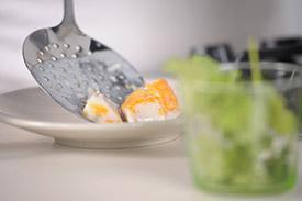 * réchauffé les oeufs 30 secondes dans une eau bouillante salé.